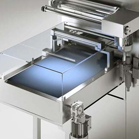 L’operculeuse SPERSEUS conditionne en barquette plastique, toutes formes, avec vide et gaz protecteur : viande, poisson, fromage, etc…