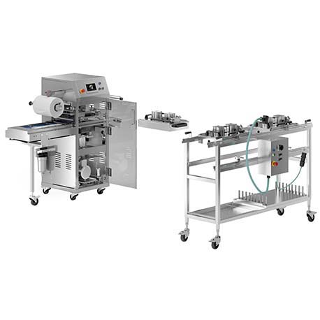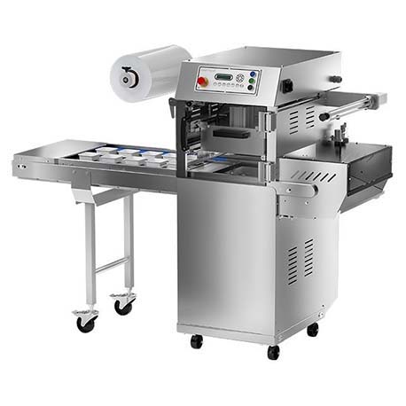 L’operculeuse SXLPRESS conditionne en barquette plastique, toutes formes, avec vide et gaz protecteur : viande, poisson, fromage, etc…